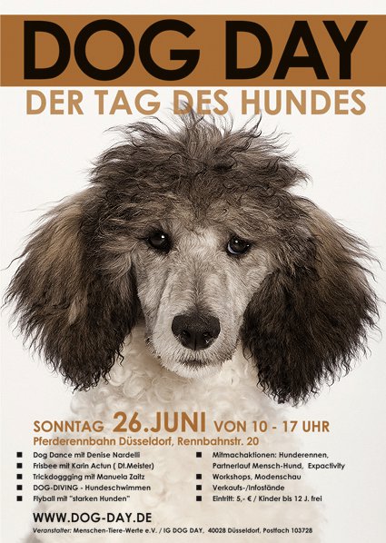 Bereits zum 9. Mal wird der Dog Day in Düsseldorf wieder mehrere tausende Hundefans anziehen. Ein buntes Programm von hochkarätigen Vorführungen, Vorträgen namhafter Fachleute, Mitmachaktionen, Workshops und zahlreiche Verkaufs- und Informationsstände machen den Tag so erfolgreich und abwechslungsreich.
