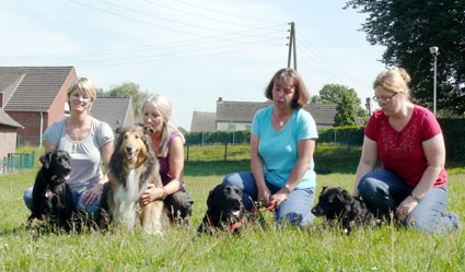Nicole mit Buffy, Brigitte mit Laika, Steffi mit Jacky und Martina mit Mogli