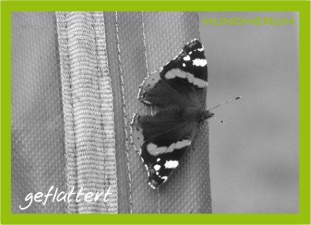 Jetzt im Oktober ist es an einigen Tagen noch sonnig und warm gewesen, und da ist man schon mal nicht die Erste auf dem Trainingsgelände. Der »Admiral« macht eine kleine Pause auf dem Agility-Tunnel, bevor die Reise vermutlich in südliche und südwestliche Winterquartiere weitergeht. Guten Flug…
