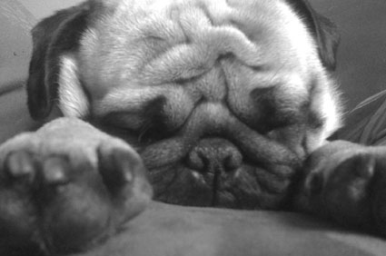 Der allgemeine Mops wird ja oftmals als faul, dekadent und mit der Neigung zum Hängebauch beschrieben. Lassen Sie es sich gesagt sein, auch wenn der Mops mit seinem niedlichen Gesichtchen und der platten Nase Charme versprüht, er ist alles, was man ihm nachsagt – er ist es nur nicht immer. Ich darf das sagen, denn gleich zwei Exemplare dieser lieblichen Knauschzone leben mit mir und meiner Familie zusammen. Unser laut Ahnentafel „Prinz“ Olek zum Beispiel ist in der Regel ein ruhiger Hund, der schon im Welpenalter nichts besser konnte als schlafen. Das tat er natürlich am liebsten auf Frauchens Schoß – auch wenn die auf ihrem kleinen Bürostuhl gar kein Platz hatte. Aber getreu dem Motto „Was nicht passt, wird passen gemacht“ schaffte es der Kleine, sich hinter meinem Rücken Platz zu machen, so dass ich lediglich auf der Vorderkante sitzen konnte. Regelmäßig landeten meine wohlgeformten vier Buchstaben auf dem Boden und der Stuhl samt Mops schwungvoll an der Wand. Olek entlockte das nur einen etwas mitleidigen Blick, kurz bevor er wieder seinen Kopf senkte und schnarchend weiterschlief. Den Stuhl räumte er nur unter mürrischem Protest. Und glauben sie nicht, dass ich mich eines Besseren entsann und Olek fortan wie jeder normale Hund in seinem Körbchen schlief. Es war ein langes Thema, ebenso wie das heimische Sofa. Man kann es ihm eigentlich auch nicht übel nehmen, wurde der Mops doch zu nichts anderem gezüchtet als majestätisch auf dem Sofa neben seinem Leibeignen zu sitzen und diesen zu delegieren. Und wir tun alles, was er will! Es ist so, als wollten wir ihm sein mit Sorgenfalten überzogenes Gesicht mit all unserer Liebe glatt streichen. Und so schleppen wir ihm schließlich die teuersten Leckerchen an ­– wir lassen sie aus Übersee einfliegen, weil die mit tierischen Nebenerzeugnissen verunreinigten Schmankerln der heimischen Industrie übelriechende Lüfte zur Folge haben. Die Luxus-Knabbereien aus 100% biologischen Zutaten probiert er aber erst, nachdem er sie minutenlang von allen Seiten beschnuppert hat. Mit viel Glück haben Sie seinen Geschmack getroffen. Befreundete Hundebesitzer freuen sich aber heute noch über unsere außergewöhnlichen Mitbringsel. Denn lassen Sie sich eins gesagt sein, was heute geschmacklich in ist, ist morgen schon wieder out. Aber bei all den Allüren kann ein Mops auch mal ein Hund sein, hinter Hasen und Vögeln herjagen und sogar Frauchen im Dunkeln verteidigen. Dass der vermeintliche Angreifer eine Mülltonne ist, sollte man dabei einfach unbeachtet lassen, dem Willen und dem Mut alle Achtung schenken und ihn mit Luxus-Schmankerl aus Übersee belohnen.