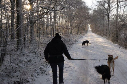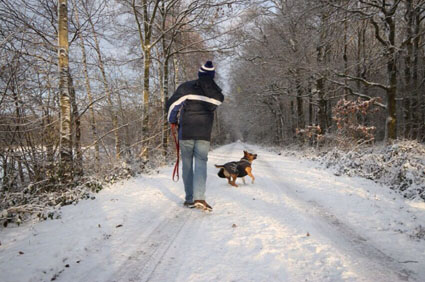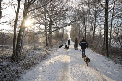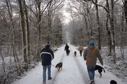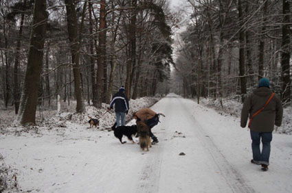 Anstelle beim Agility im Schnee zu versinken, hat die Gruppe einen schönen Schneespaziergang in der nahen Umgebung gemacht. Heike hatte die
